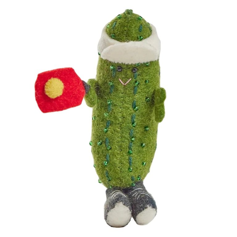 There’s a delightful contrast in a traditional felt pickle ornament playing actual pickleball or a fragile glass option depicting a literal dumpster fire. “In the same vein of sharing a meme with someone that makes you think of them, these ornaments highlight all of our particular quirks and qualities,” says Jamie Meares, founder of Furbish, one of our top sources for funky ornaments. A little irreverent humor on the tree beside a beautiful keepsake lets you celebrate that seasonal nostalgia.