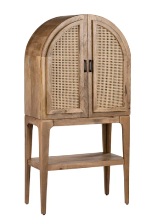 For a proper spot to store your holiday booze, consider this arched cabinet crafted from mango wood. Inside, you’ll find a built-in wine rack that can fit up to five bottles, a glass holder, and two drawers for the rest of your fixings.
