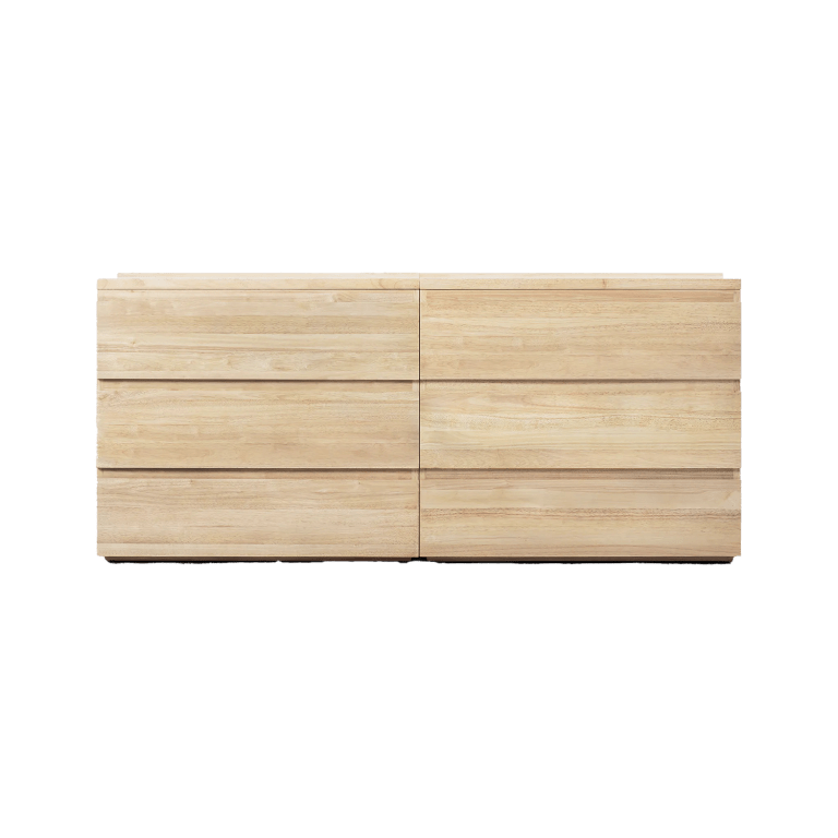 Dimensions: 30-by-60-by-18 inches | Material: White oak, MDF, oak veneer | Drawers: 6
