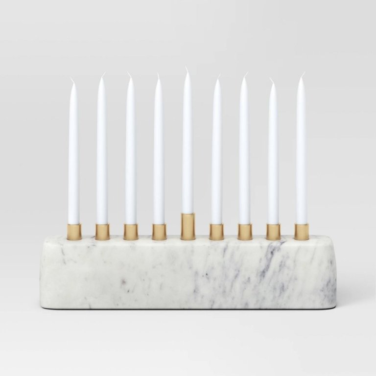 Our personal favorite is from Crate & Barrel’s new Lucia Eames collab, serving up a classic yet playful design we could easily imagine passing down through generations. Runners-up include CB2’s minimalist travertine number, with a texture that feels reminiscent of the Western Wall, and Via Maris’s just-launched design, which is basically a menorah version of all the trendy colored glassware we’re loving.