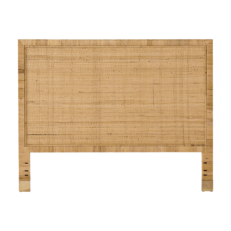 Material: Mahogany frame covered in hand-wrapped rattan | Height: 50 inches | Frame compatibility: Attaches to any standard bed frame | Starting price: $1,398