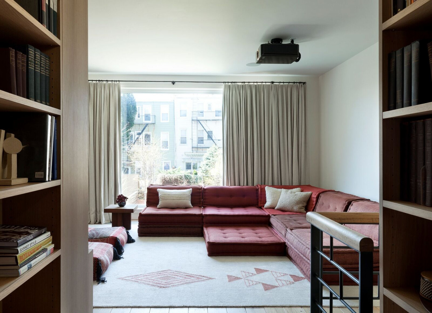 Hands down, the sofa in this home is the best sofa we’ve seen all year (ever?). It’s owned by Christian Rudder, co-founder of OKCupid, and Reshma Patel, founder of Quiet Storms, and it was designed by Amanda Jesse and Whitney Parris-Lamb of Jesse Parris-Lamb. The sofa in question is a classic design by Mah Jong, upholstered in muted reds. See the full Brooklyn townhouse here (there’s some great tiling in the kitchen).