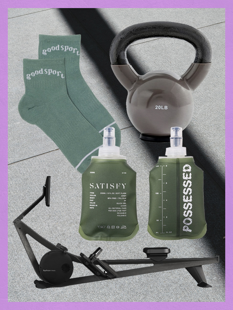 Laying out that matching top-and-bottom set with a cushy pair of socks is another strategy to get amped to be active aside from workout equipment. That or tapping a few accessories like a sling bag or easy-to-squeeze flasks that’ll make a tough workout a little more fun.