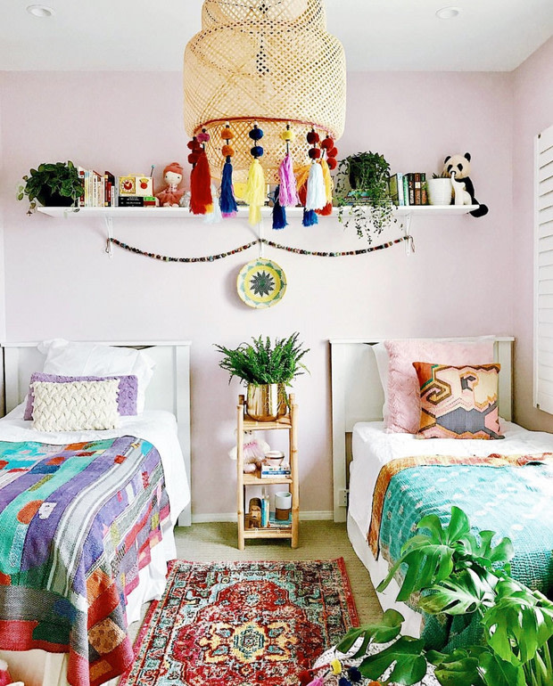“My own version of the Sinnerlig hack consisted of taking a colorful pom-pom-tassel garland from Crate and Barrel Kids and hot-gluing it onto the border. It added instant color, texture, and pattern to the already-popular lamp for my girls’ colorful room,” says Anita Yokota.