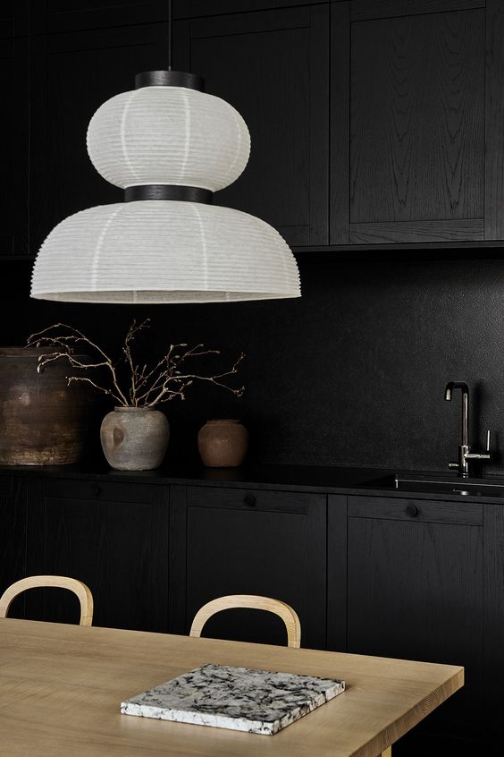 Haven’t you heard? Black kitchens are the new white kitchens. With matte black tones ruling the color trends for a couple of years now, you can’t go wrong with dipping your toe into this style. Go all-out with the dramatics and paint your kitchen in a true black shade—look for one without cool or warm undertones. This kitchen, created by A.S.Helsingö, is a great example to follow.