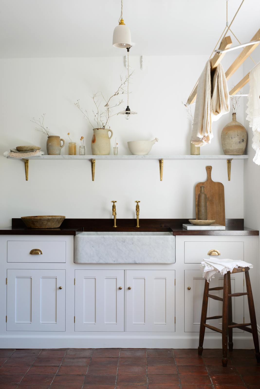 If a more lived-in feel is what you’re after, look for a cream-hued paint. Whitney Leigh Morris is an expert in making a tiny home feel perfectly curated, and in her kitchen, that starts with a warm neutral base that’s versatile enough to work in the rest of her open-floor home. The off-white makes the kitchen feel light and airy. And as anyone who has ever dealt with a small kitchen will tell you, that is an important feeling to accomplish.