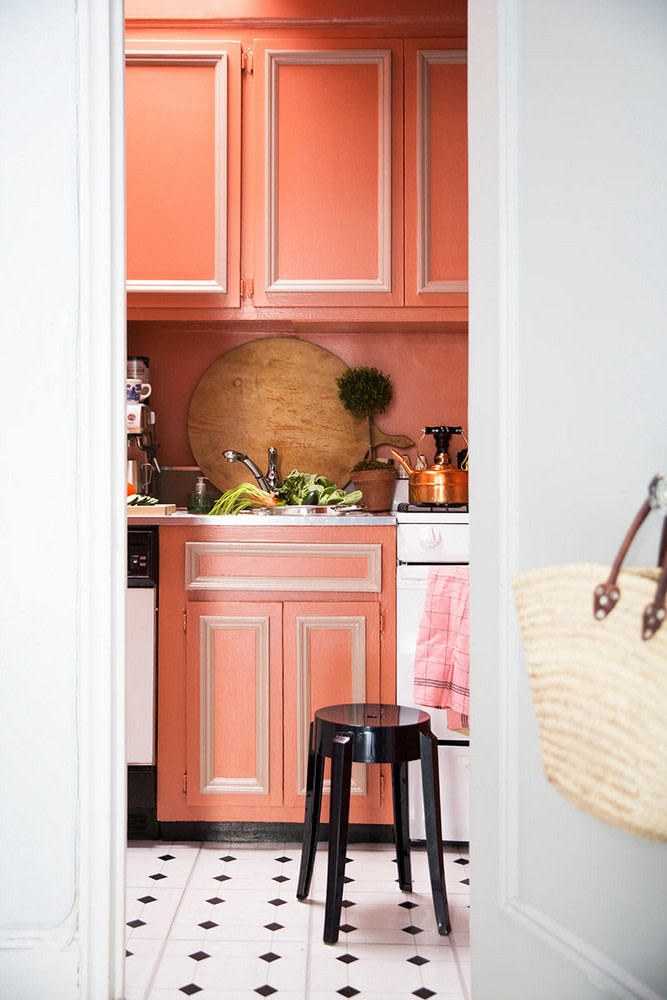 As far as kitchen wall colors go, vibrant coral is definitely a daring one, but this tiny NYC kitchen pulls it off with such ease, there’s hope for anyone attempting the bold hue. Pantone’s pick for 2019 color of the year, Living Coral, is prime for maximalists. And if you’ve gone as far as to dress up your kitchen’s walls with a similar shade, you may as well go all-out: Try your hand at color-blocking, setting the coral tone against an equally vivid citron yellow in the tile or accessories for some fun contrast.