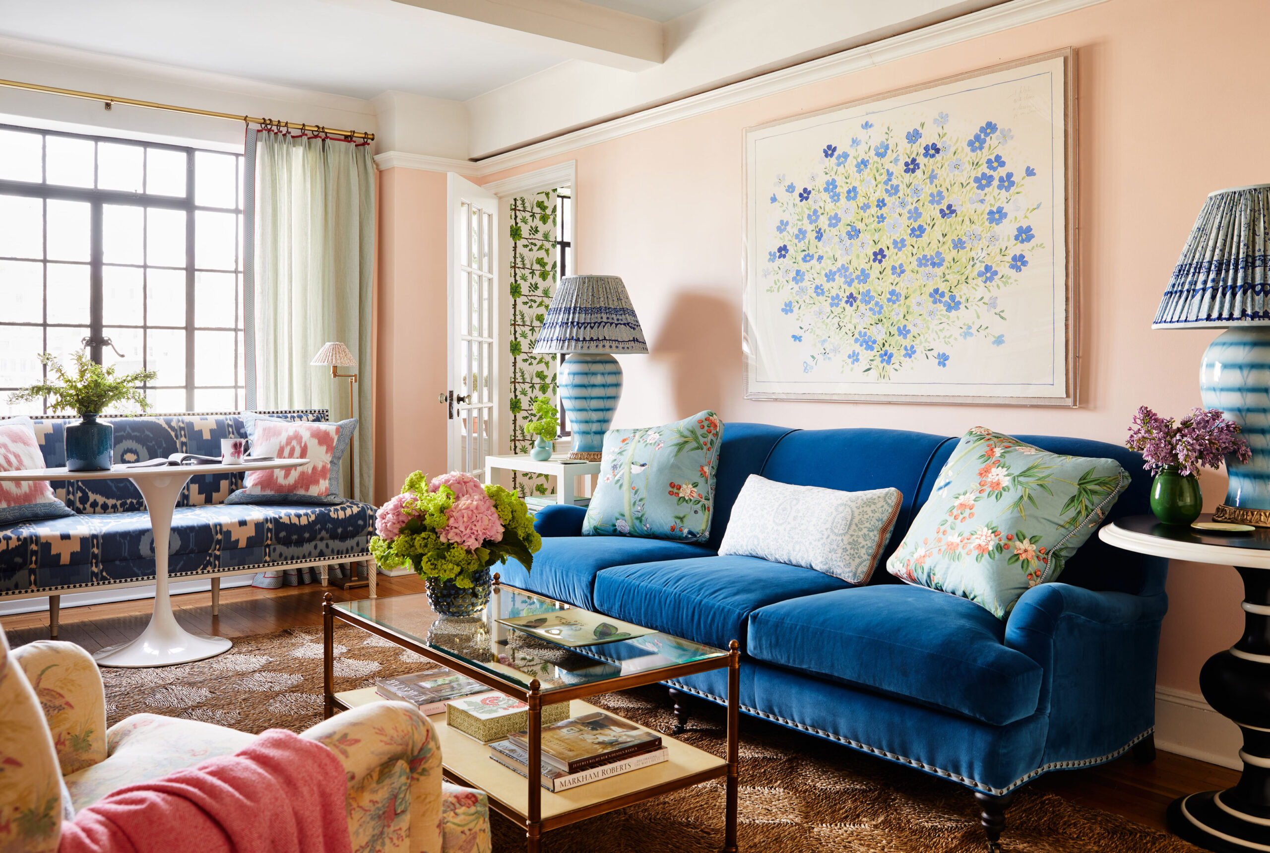 New York–based designer Lilse McKenna has used Farrow & Ball’s Pink Ground as a neutral alternative in a number of living rooms, including this West Village apartment. “It doesn’t read as too pink because it has very little blue in it and offers a nice contrast to a range of colors—navy, red, aqua, teal, and natural textures like seagrass,” she notes. “Perhaps the best perk of a soft pink like Pink Ground, though, is that it reflects a rosy glow on everyone’s skin when they walk into the room, both in natural sunlight and in lamplight in the evening.”