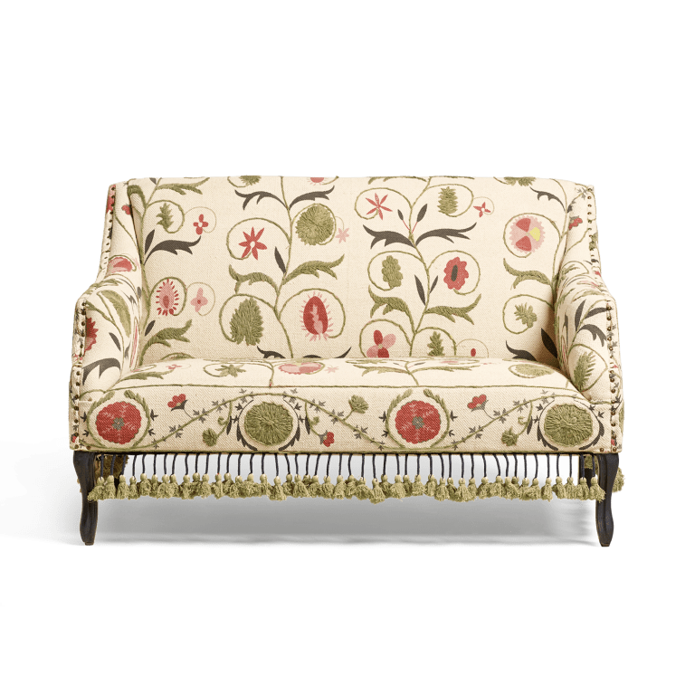 If you’re bold enough to step outside of the solid-sofa shopping box (we think everyone should!), then let this bespoke patterned love seat from OKA be your gateway purchase. The design is handmade by artisans featuring hand-embroidered cotton upholstery and a charming tasseled fringe, which can be easily removed or reattached depending upon your aesthetic preferences. While this particular Tarma two-seater is inspired by an antique rug, you can also purchase it in two other playful patterns: a chic charcoal stripe paired with burgundy fringe or another vintage-inspired textile motif.