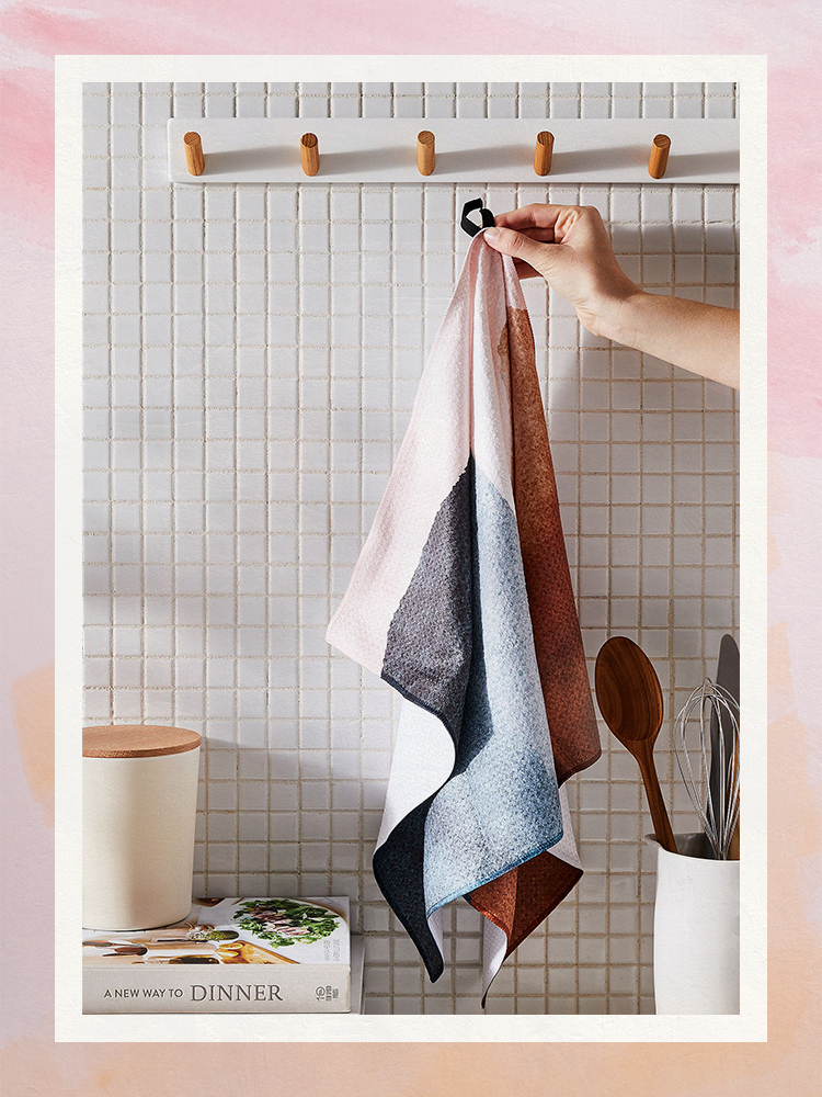If this were a beauty contest, the microfiber tea towels by Geometry would win hands down. Made of recycled material, they’re thin but soft and come in vibrant colors and bold patterns that our tester loved leaving on display. Good looks aside, they’re also highly functional and particularly great to have in the kitchen, where they clean up spills and dry dishes (or hands) beautifully. After intense dish-drying sessions, our tester hung them up and was pleasantly surprised to see that they dried quickly (thanks to that thin construction). Our tester was also impressed with how easily these cleaned up something a little more intensive, too: She used them to clean a water painting spill in her toddler’s play area and they swiftly picked up the mess and then washed out nicely as well.