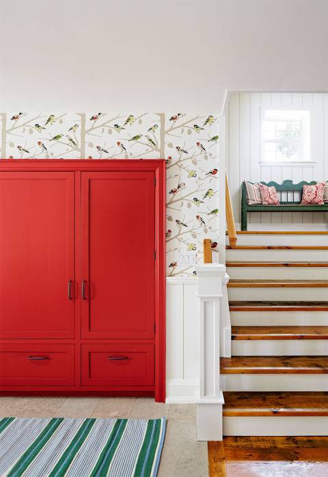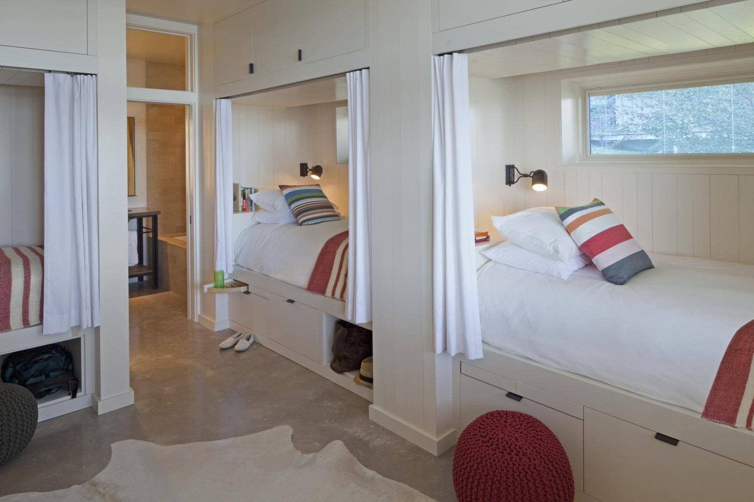 Everything about this lake house is kitschy-chic perfection—including these red-painted twin beds. We can only imagine the fun-filled family weekends spent in this space.