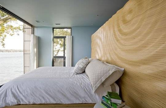 Ever heard of Lake Okoboji? That’s where this Iowa lake house is located. Besides the breathtaking view, the modern headboard is really catching our eye. (We think we need to touch it and/or see it in person to fully comprehend the design.)