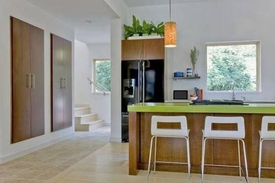 If you think this kitchen is cool, just wait till you see the rest of the house! This 2,800-square-foot home sits on five acres of waterfront land in Texas. Bonus: It has a pool that kind of resembles a moat.