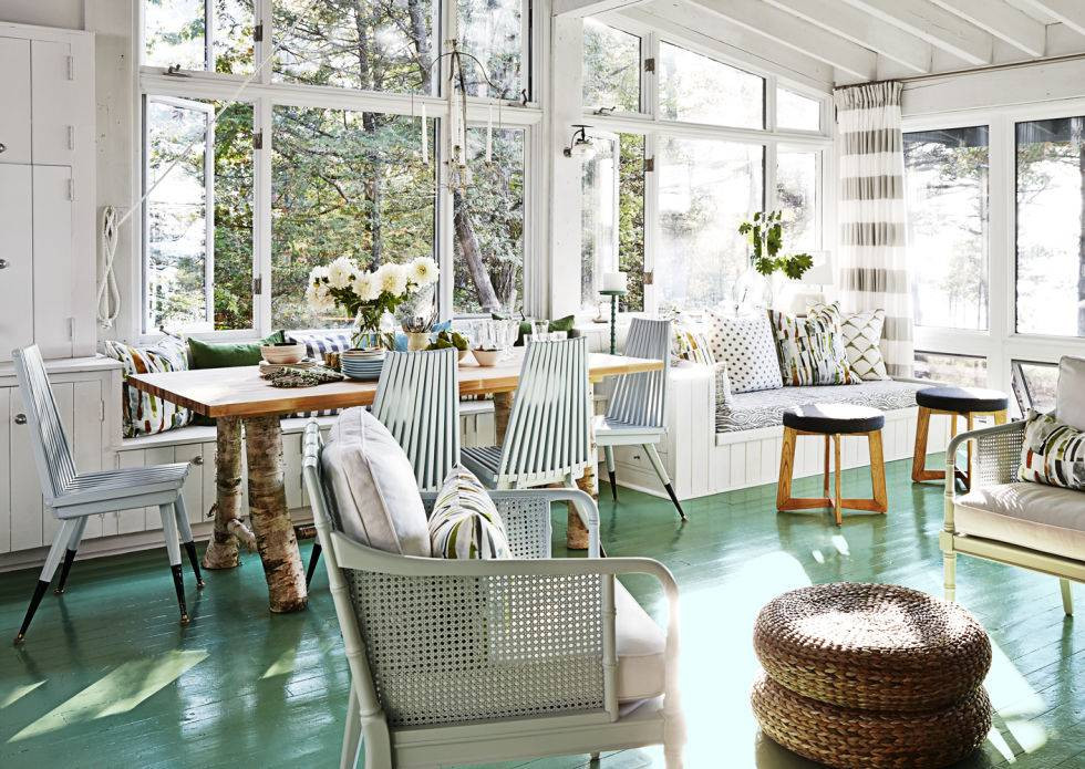 Yep, those are aqua-painted floors. Designer and HGTV star Sarah Richardson updated this Lake Huron home to better fit her personal style.