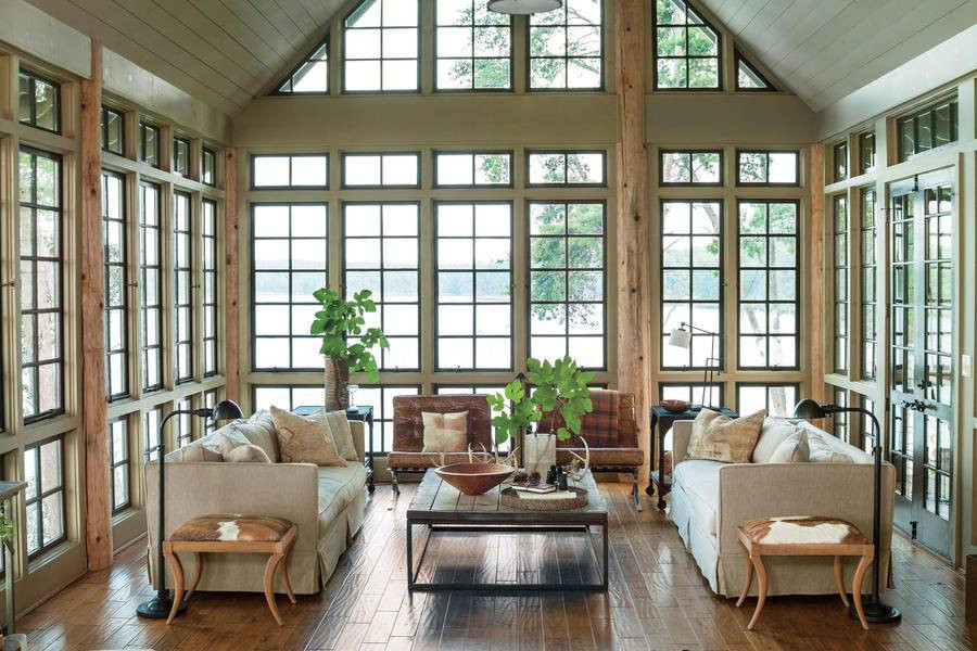 This 5,000 square-foot Alabama lake house is filled with welcoming cottage-style decor. The neutral colors and fabrics look cozy and evoke a feeling of home.