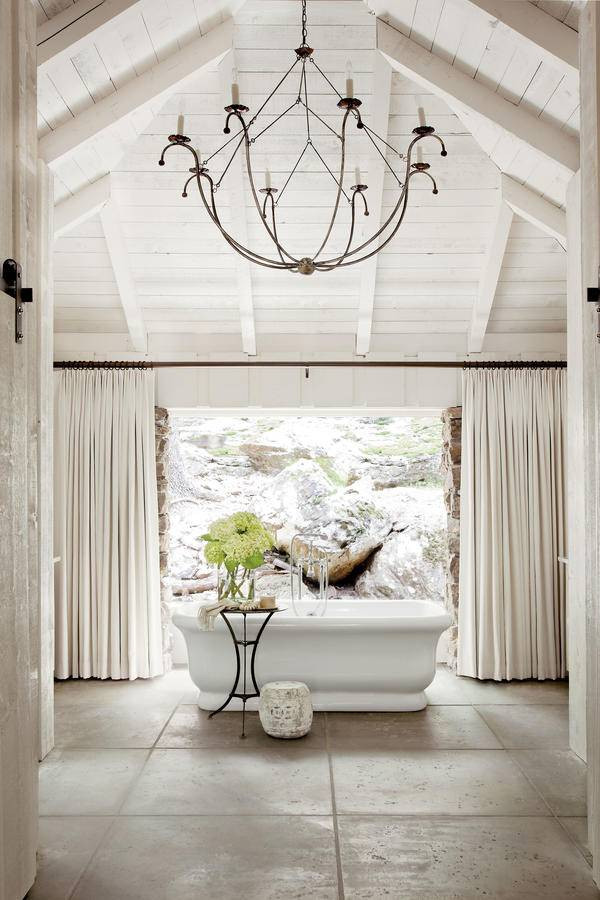 You’re currently looking at designer Thom Felicia’s Upstate lake house, complete with a rope handrail that leads upstairs to more rustic, but sophisticated decor.