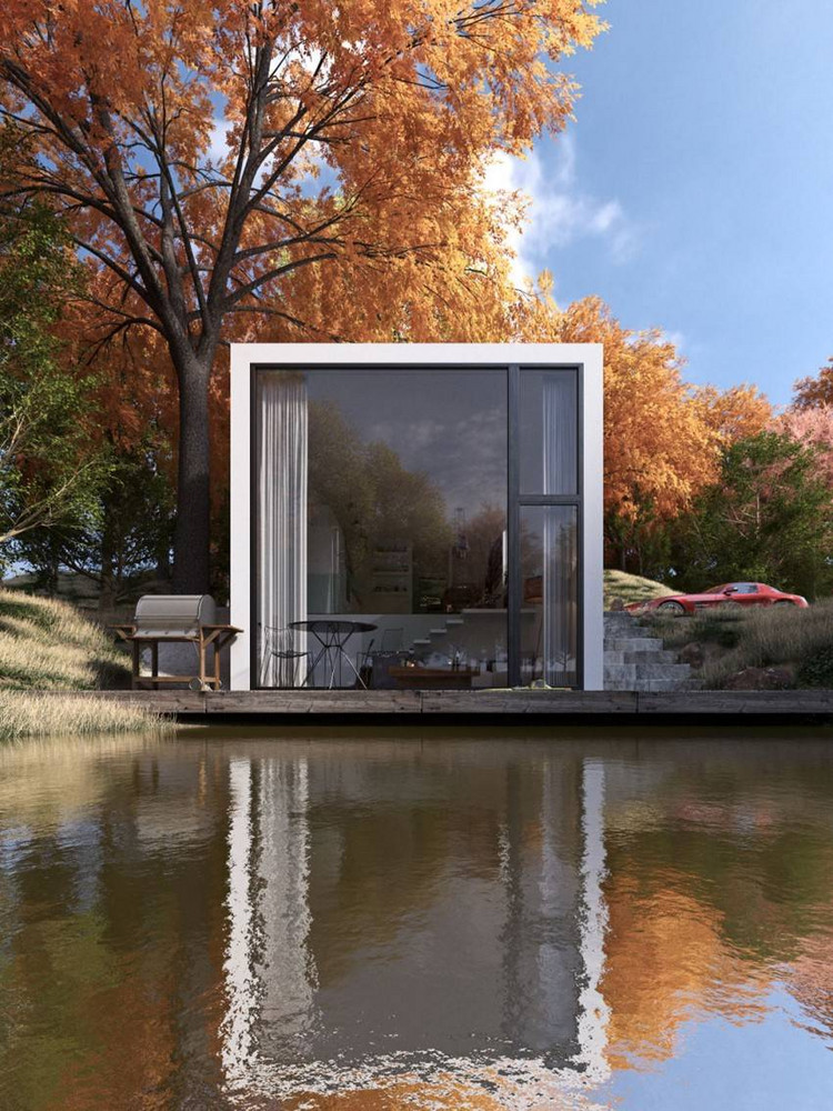Not only is this lake house totally modern and beautiful, but it’s energy efficient. The owners scrapped their old place to make new for this new home that naturally has a cool exterior, too.