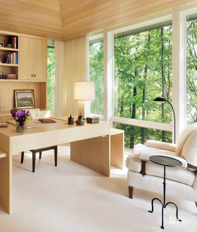 We guess if you live in a lake house, you’re going to have to do some work at some point. It might as well be in a room where half the walls are actually windows so you feel like you’re in a treehouse.