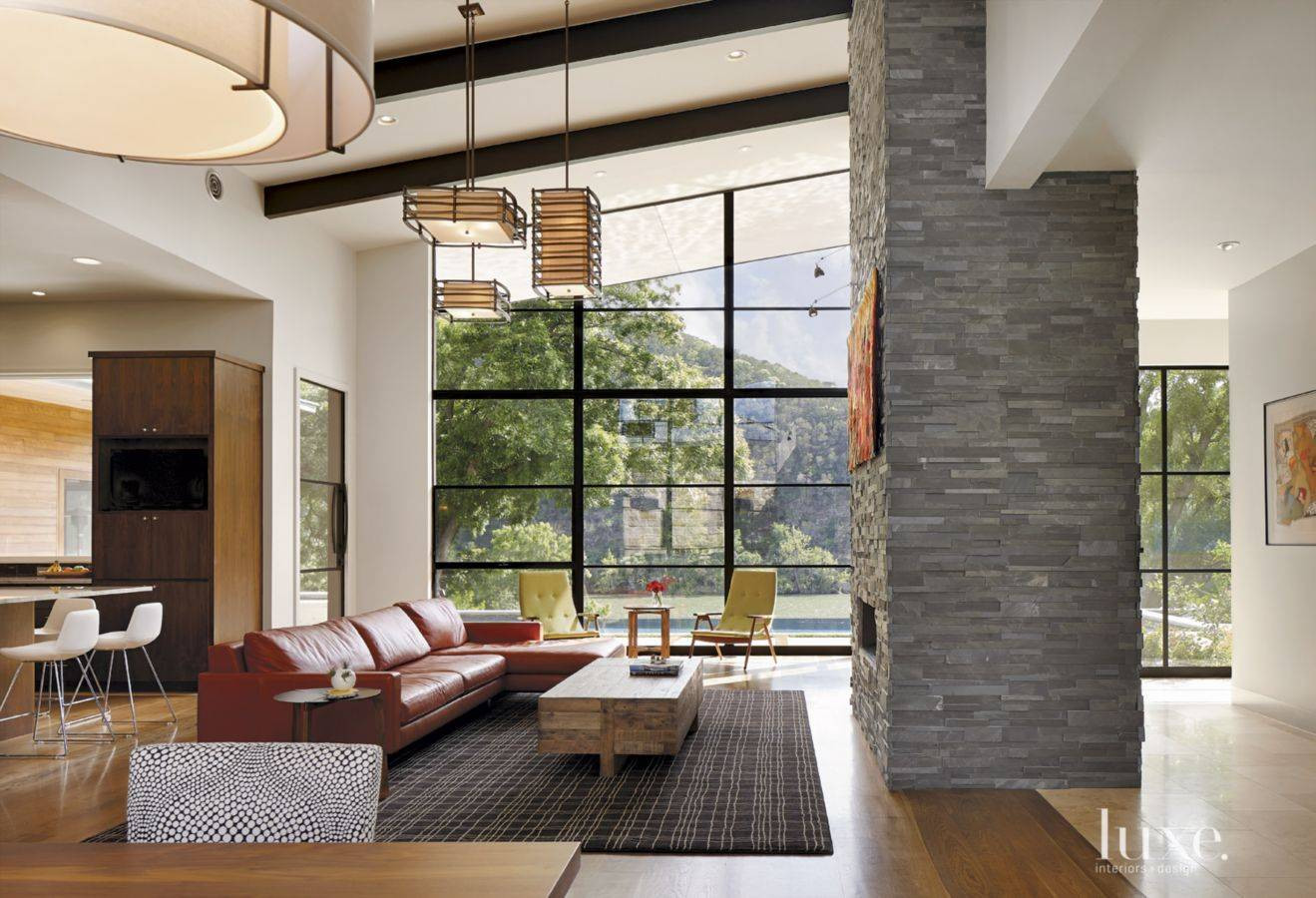 We have a thing for floor-to-ceiling windows, and this cabin is no exception. Though the panes slightly obstruct the clear view of the lake, it adds definite visual interest and most importantly, let’s in copious amounts of natural light. (See more here!)