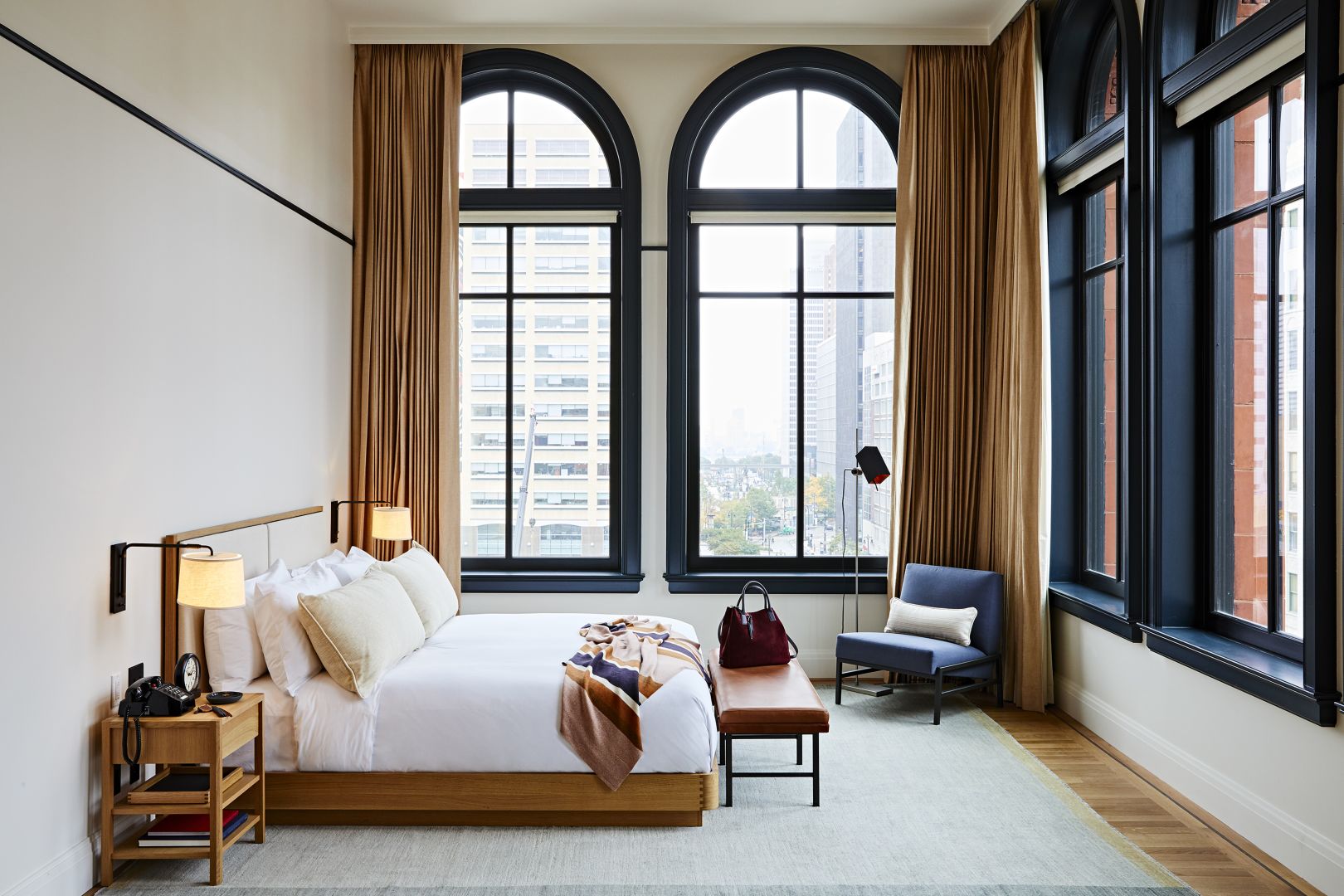 Shinola Hotel is the latest and highly anticipated addition to Detroit’s burgeoning design scene. The product of a collaboration between luxury watchmaker Shinola and real estate firm Bedrock, the hotel brings a bold dose of modern elegance to Motor City with thoughtful odes to its past. The hotel currently occupies five buildings, two of which happen to be restored historic sites, and even boasts a curated retail experience featuring partnerships with brands such as Le Labo and Madewell.