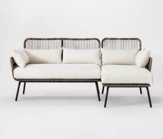 Sectionals come in various configurations. The classic L-shape features a chaise on either the left or right side to put your feet up on and is “easy to place in just about any outdoor layout,” says Messner. The Y-shape, which has two sides of equal length configured at a 90-degree angle, is ideal if you often host large parties. Similarly, a U-shape design is great for big groups or to wrap around a firepit or outdoor coffee table. “It’s a statement piece that pulls a whole yard together,” says Messner. But, she warns, this shape typically works best for the largest of yards, as it can take up a lot of space.