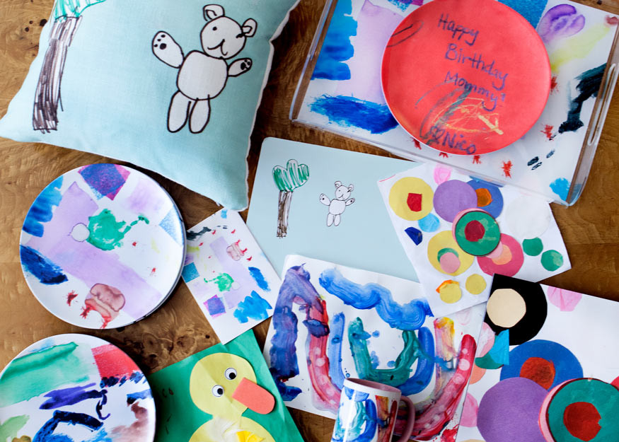 Showcase your kid’s art beyond the refrigerator door! Our editors recently tried out the new Home Decor and Gifting collection from Shutterfly that is completely customizable in a few quick clicks. We reimagined a series of art works by the team’s kids into everything from unique tabletop pieces to colorful textiles. Shutterfly lets you play with scale, color, and different materials, as well as design and layout. You can also create new masterpieces by tiling scanned artwork into a graphic pattern. Customizing useful everyday items creates meaningful gifts and souvenirs. Special drawings become little memory capsules – and everyone is inspired.