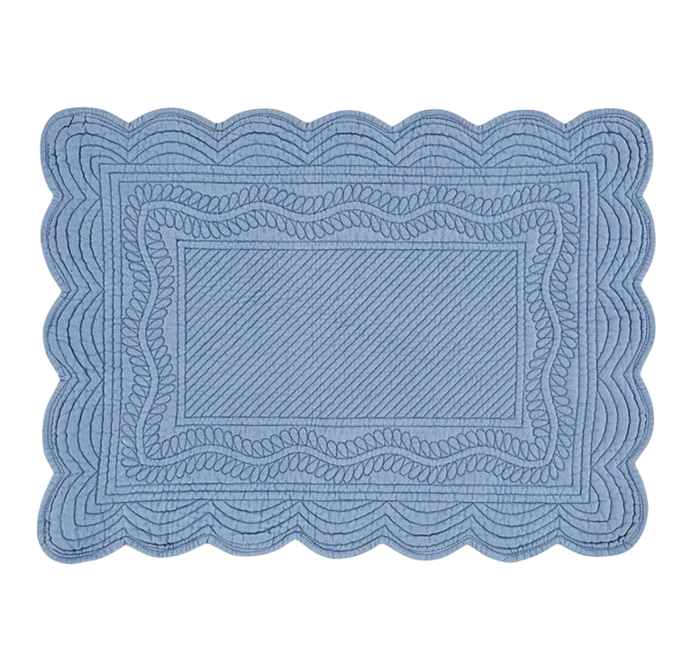 Quilted placemats are often made of cotton with cotton fill and add an extra cushion for your plate to rest on. Furbish Studio makes seven different styles, and you can mix and match borders. Its block-printed pieces are handmade in India using cotton sourced under the guidelines of the Better Cotton Initiative. Ballard Designs’s Marseille quilted table linens offer some understated elegance in a quilted pattern and scalloped edge.