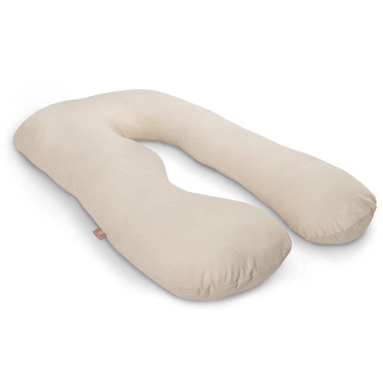 As comedian Allie Wong said: You’re busy making an eyeball, so no expenses should be barred when it comes to your comfort and sleep. Made in France with OEKO-TEX-certified, 100 percent quilted French cotton fabric and scentless, nontoxic micro-pearl fill, this pregnancy pillow is on the softer side, but it’s more pliable than our other picks, allowing you to adjust it into a specific shape that isn’t predetermined. “I loved how this pillow was soft and malleable, allowing you to put it into a variety of positions,” notes Giovanna Campagna, founder of Joaquina Botánica. “And while it is not so long that it takes up the whole bed (my husband was also grateful for this!), it gave me sufficient support.” After pregnancy, Big Flopsy also pulls double duty as a nursing pillow, and you can nurse easy knowing that your baby is resting on OEKO-TEX certified fabric. “You accumulate so much stuff in the baby phase, that I especially value objects that are multipurpose,” Campagna adds. While the Big Flopsy does clock in as our longest pillow at 67 inches, its curved design means it actually takes up less room on your bed.
