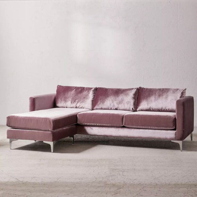 A one-bedroom apartment or midsize living room provides plenty of space to stretch your legs—each of these offerings is less than 8 feet long—and show off some personality with fabric and pattern. For example, a lilac velvet sectional gives off a luxe vibe (even if it only costs $1,100), while a dark squishy version would go great in your gaming den.