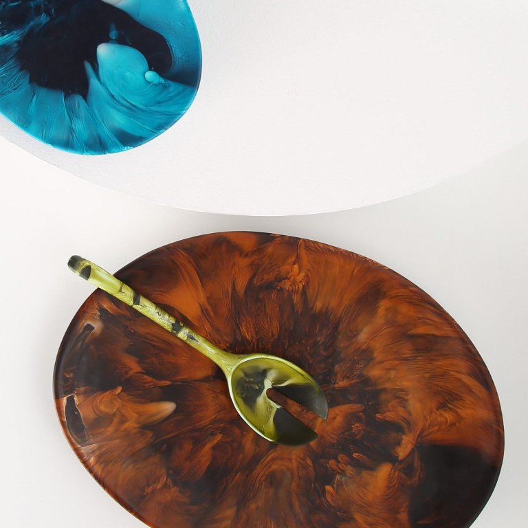 When your platters will be safely on a table, you can afford to splash out on delicate ceramic. Opt for moodier shades of classic colors, like rich plum or mustard yellow, in timeless silhouettes. The darker hues will make the perfect backdrop for vibrant summer salads.