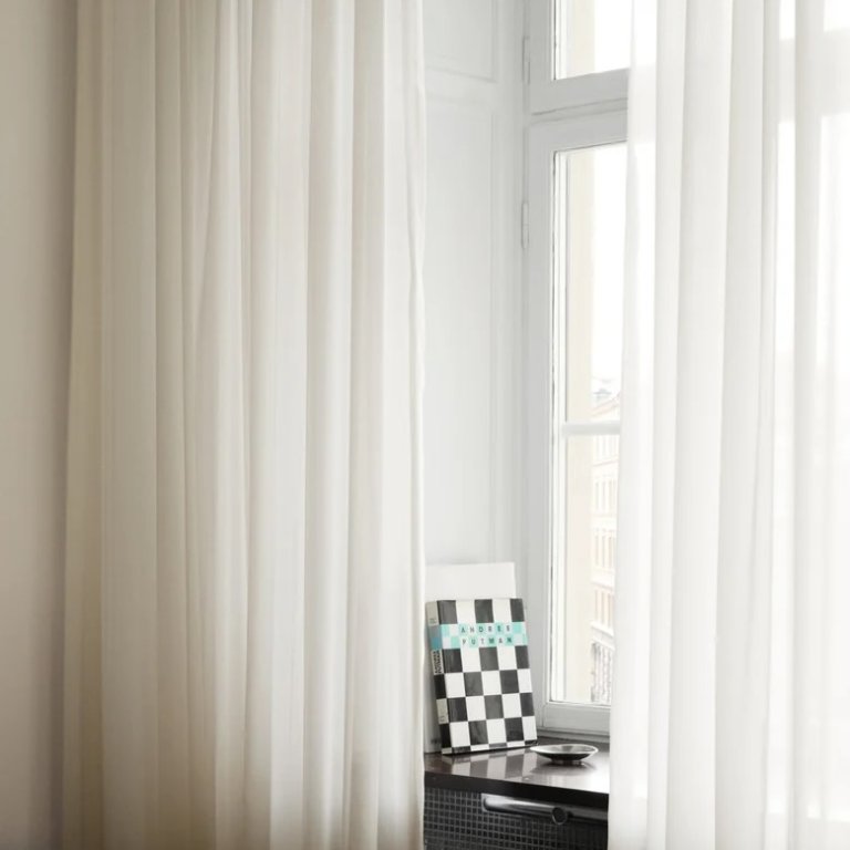 When it comes to sheer curtains, deManana prefers to stick with natural fibers, though synthetic blends sometimes offer greater durability and easier maintenance. Sheer curtains come in a range of fabrics, even delicate silk, but deManana’s go-tos are: