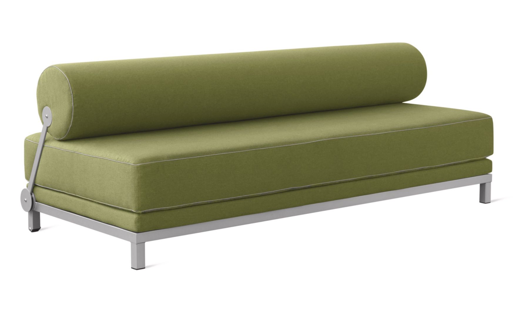 Like a blow-up mattress, this sofa bed is a one-person operation. Unlike a blow-up mattress, your guests won’t sink to the floor in the middle of the night only to wake up with a backache. Another plus: The armrests act as a footboard and headboard once unfolded.