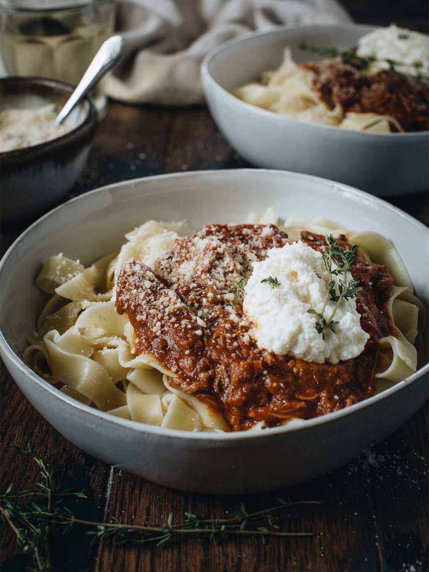 Pro tip: “It’s best served over any kind of wide pasta, such as pappardelle, but you can easily change it up with a healthier base like mashed cauliflower or any spiralized vegetable. This isn’t a traditional ragù, so if you want to elevate your sauce, add a sofrito (chopped celery and onions) and red wine.”