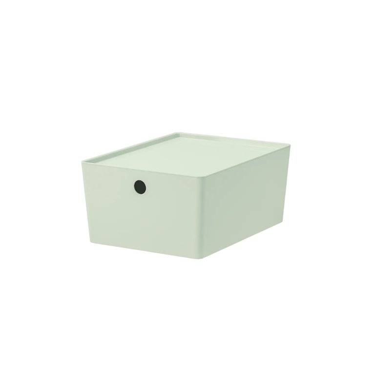 Minimalist in both design and color selections, we love the discreetness of the Kuggis storage bin and its tiny—but effective and graphic—thumbhole. It’s particularly great for storing toiletries, as its sleek look keeps privacy intact. And rest assured: It fits perfectly with IKEA classics like Billy shelves and Besta storage units. While the color selection of white, dark turquoise, and light green might not be the neutrals we’d expect, we like the idea of making storage the pop of color or moment of fun in a closet or cabinet.