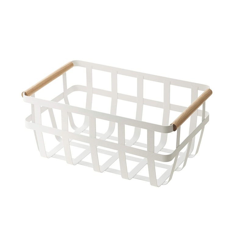 From the Japanese organizational gurus at Yamazaki comes the Home Storage Basket, aka the perfect pantry or hobby organizer. With an oversize, open-basket matrix and wood handles for easy transportation, it’s great for holding larger kitchen items like bags of snacks or produce, but it also works just as well for containing clothing, toys, or crafting supplies. Its painted steel construction feels strong and sturdy, with a durable powder-coated finish that gives it a glossy, lightly textured look. We can see these lined up neatly in a closet, filled to the brim with goodies that stay where they’re supposed to, though one Domino editor keeps hers permanently perched on top of the fridge to corral extra bags of coffee and ramen.