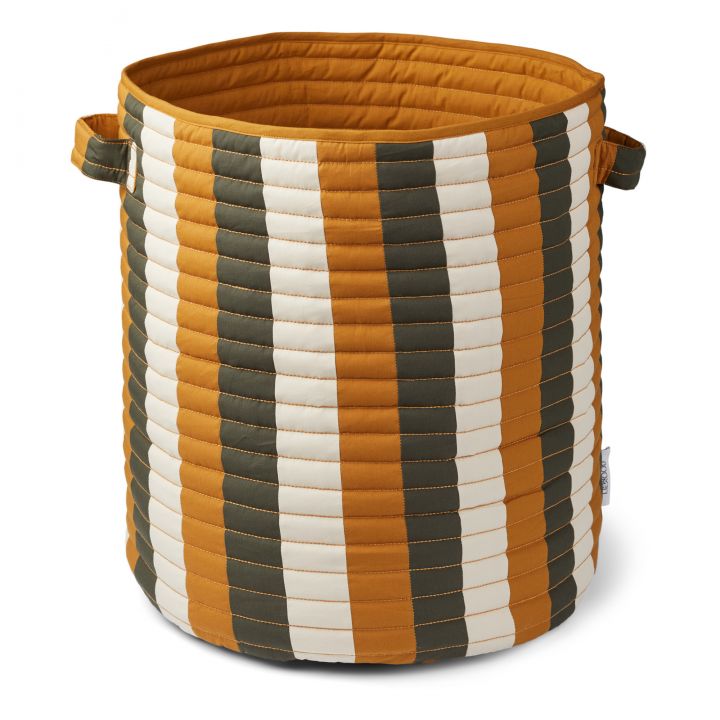 Whether you need a home for a collection of blankies, costumes, or dump trucks, this large cotton basket can do it all. Choose between one of 12 neutral color options and a solid, two-tone, or stripe design. We promise you’ll never have to hear, “Where’s my dinosaur costume?” again.