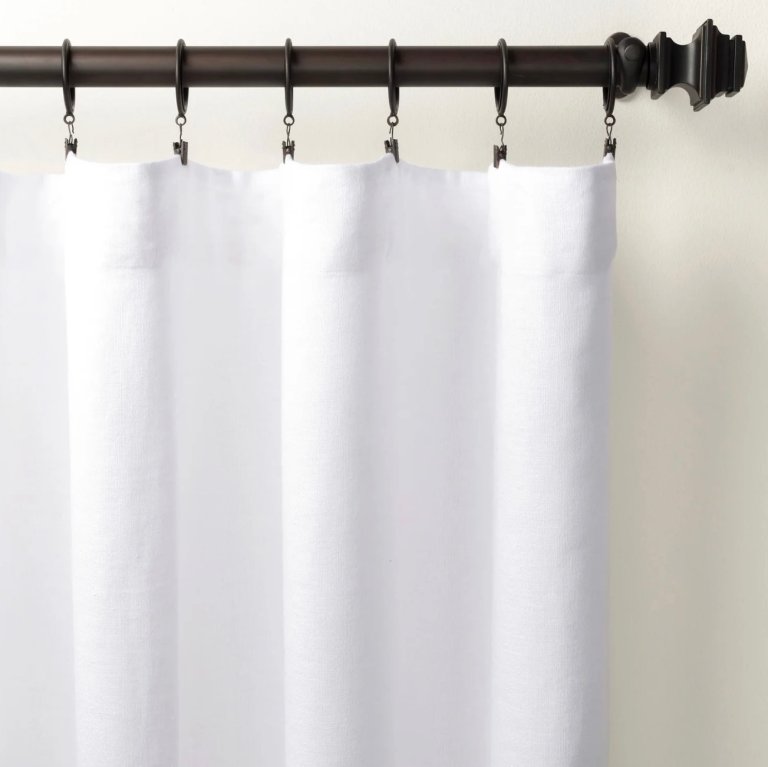 If you’re in renovation or redecorating overdrive, don’t skimp on the finishing touches. Nordic Knots makes gorgeous styles that range from ethereal sheers to Good Design Award-winning wool. We love that the brand’s smart band design fits tracks or rods and standard hooks. Annie Selke is one of our go-to’s for rugs and bedding, but they also stock chic white panels that come in a variety of lengths. And Pepper Home may be better known for semi-customizable prints, but there are neutrals hanging out on their virtual shelves, too. Pick your band construction, width, and lining from pre-determined options, and then plug in the specific length you want.