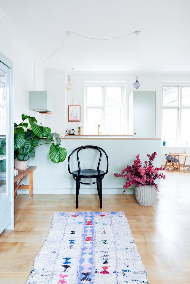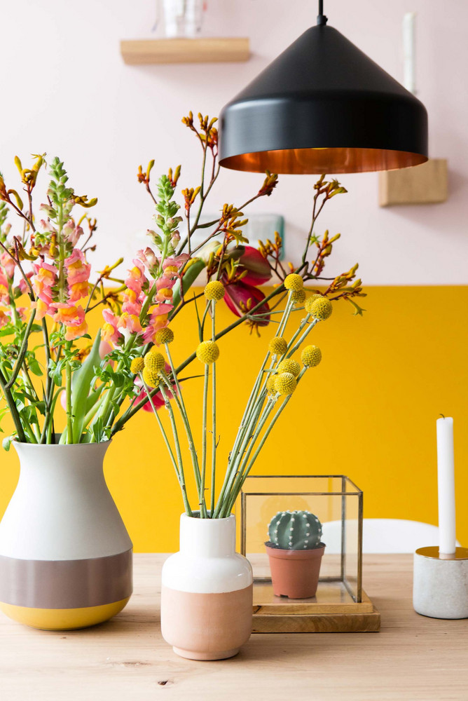 Two of our favorite summer shades come together in a stunning display in this brilliantly colorful dining room. Paired with an array of bold florals and streamlined Scandinavian decor, the finish is surprisingly laid-back and simultaneously fresh.