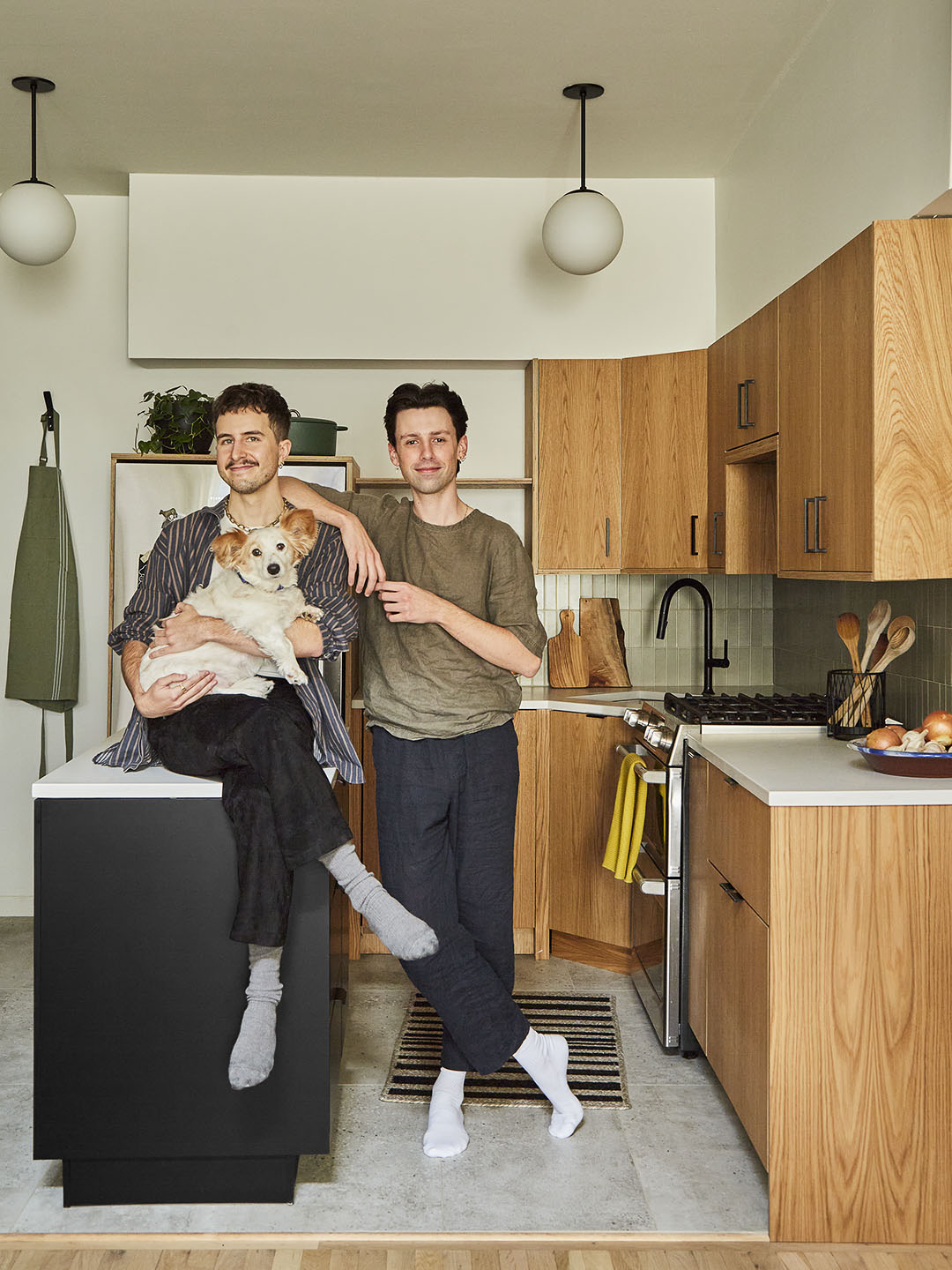 When Jeremiah Corley, the social media manager for sexual wellness company Maude, and Anthony Espino, the owner of digital marketing agency Miki, bought their first home together in Boerum Hill, Brooklyn, last year, they agreed their dated ’80s-era kitchen wasn’t super-functional—but it wasn’t entirely unlivable either. So they decided to sit with it…at least for a year, “even though I never really knew what temperature the oven was at,” recalls Corley, the bigger baker and cook between the two. “It was so old that when you turned it to 350 degrees, you couldn’t be sure it wasn’t actually 500 or 200. There was a lot of repeated checking.” And don’t even ask about the burners. “If you set one on low, but didn’t do it extremely slowly, all of them would turn off,” Espino chimes in.