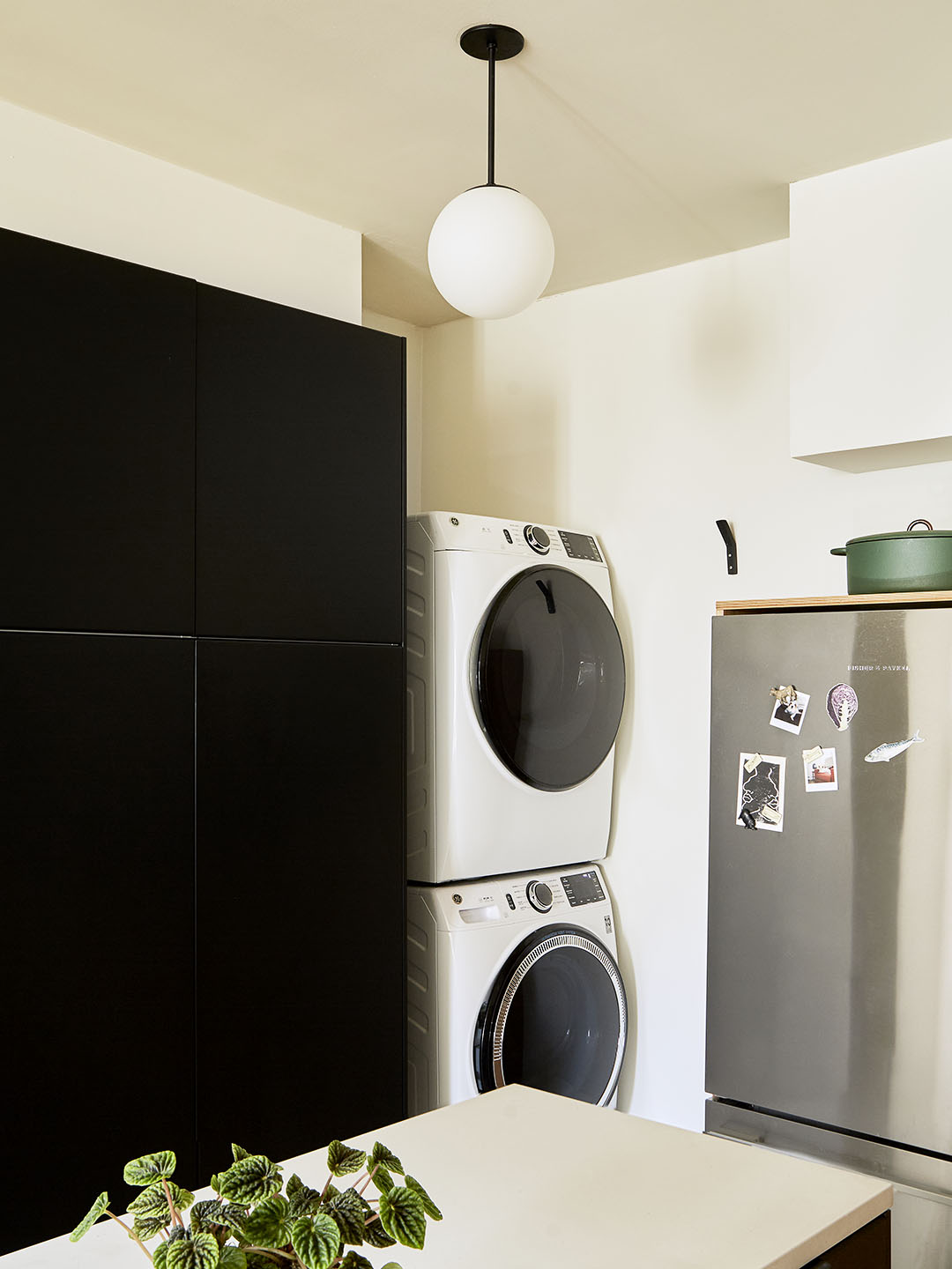Espino: By stacking our new washer and dryer (and moving the fridge), we managed to create a ton of counter space. We had to pay more for a new washer with a reversible door, that way it wouldn’t be opening into the wall. FYI: There aren’t many stacked models to choose from with reversible doors, so we were forced into a more expensive option right off the bat.