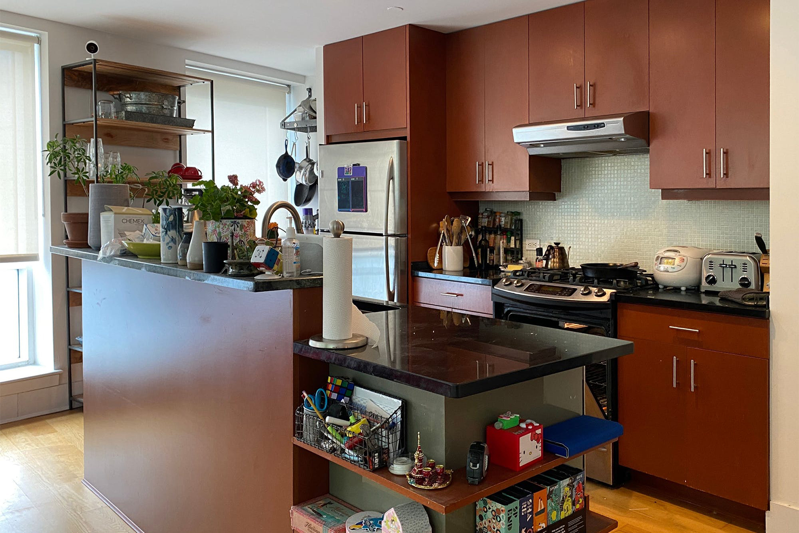 Editorial and fashion photographer Sebastian Kim never intended to renovate his South Williamsburg, Brooklyn, duplex. But a burst pipe changed all that. In April 2021, a massive flood took out seven apartments in his building, drenching the lower level of his home and damaging the floors in his upstairs kitchen. “There was water spewing even outside the building,” recalls Kim. Before the event, he had rented the place to tenants for a solid six years and eventually moved in with his own growing family. He even put the home on the market for a short period of time, but after a divorce and the serious water damage, he had an excuse to give the place a glow-up, starting with the dated red kitchen. So what would it cost? He had to do a lot of digging to find out.