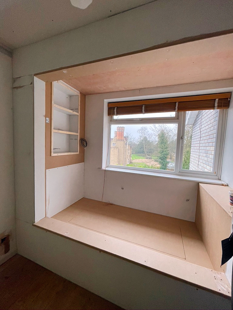 To clear the way for the nook, Henderson relocated the radiator to the other side of the room. Then a woodworker came in and fabricated the bed frame following the designer’s detailed drawings, which was specified to fit a standard twin-size mattress. An electrician also came on the scene to wire a concealed, double-USB socket into the bottom shelf for when the little one grows up and has a phone or an iPad in need of charging.