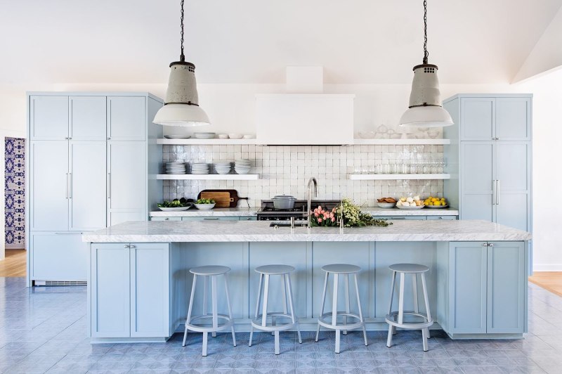 Bold enough to fulfill your cravings for color, but easy enough to live in your house forever, blue kitchens are staking their claim. But are you really surprised? Blue paint colors have been trending in a big way for the past few years. And while we’ve seen the hue take shape in saturated bedrooms and pattern-forward bathrooms, the color lends itself particularly well to the heart of the home.