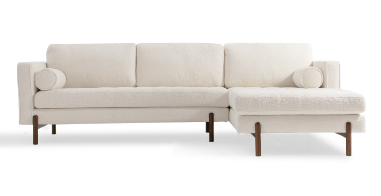This mid-century modern–inspired chaise sectional is for those who are ready to just go for it. A few details—including prominent walnut legs and minimal tufting on the back cushions—keep it from feeling overly retro, though the silhouette is clearly influenced by Mad Men–era furniture.