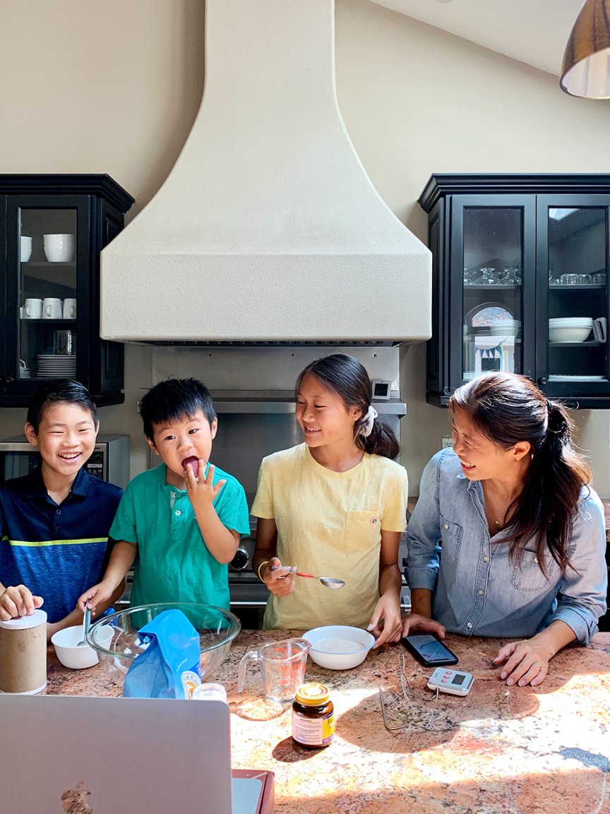 Like many people, KiwiCo founder Sandra Oh Lin spent the early months of sheltering in place experimenting with sourdough starters and broadening her cooking skills. Unlike many people, she did so with her very own kitchen crew: her husband and three children, ages 13, 11, and 4. It started with a bag of tapioca flour. “We’d been chatting with family friends about making homemade boba bubble tea with it, and they had actually been thinking of doing the same thing,” remembers Lin. “So we decided to try making it together over FaceTime.” Four hours later, a new ritual was born, and every week since, Lin and her family have hosted Zoom cooking clubs with friends and relatives from around the country. “We were all craving connection, and having the opportunity to do something fun and creative, even from a distance, was such a silver lining,” she says.