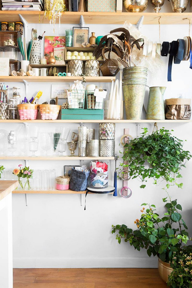Necessity and budget really. The shelves were the cheapest I could make. I bought the pine and the brackets from Home Depot, and put them up with an IKEA drill!!! I’ve always loved pegboard, I would love a whole wall of it. The idea of everything having it’s own dedicated space makes me so happy.