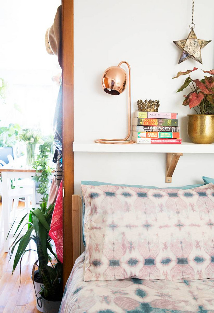 WHAT INSPIRED THE SHELF ABOVE YOUR BED? I LOVE HOW IT’S KIND OF A FAUX HEADBOARD + STORAGE.