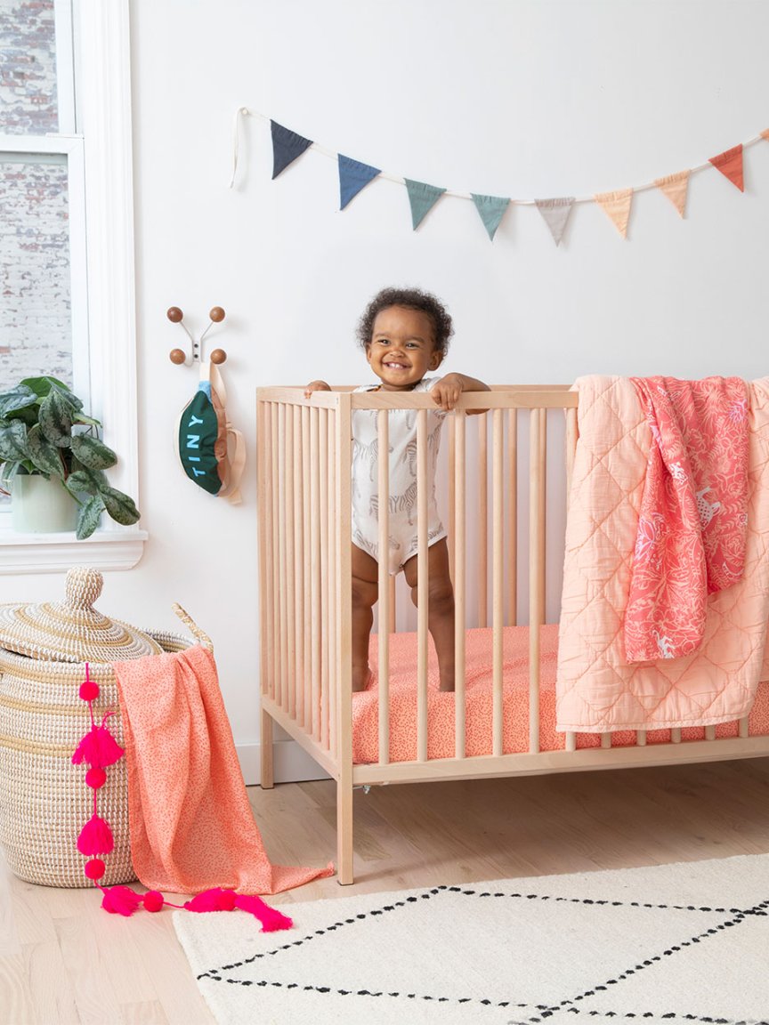 As for the inspiration, the duo sifted through the print archive of the Design Library to pick out vintage patterns in vivid pastels. “The colors play well with each other, so you can use them all together to create an energetic vibe or just use one or two for something tranquil,” explains Vicki. “We see this as a necessary function for baby collections, because you’re changing out sheets and swaddles so much.” Who says grown-ups are the only ones who get to enjoy a bedding refresh?