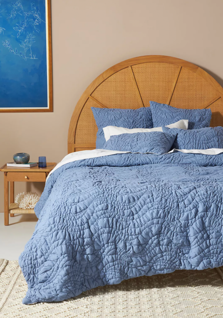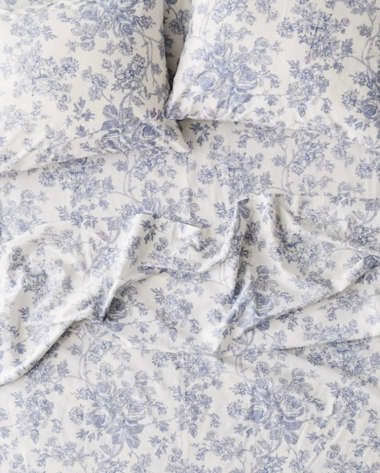 Layer the duvet with a small-scale floral sheet set—pattern pairing 101! Then opt for a quilt in a similar color story to add depth.