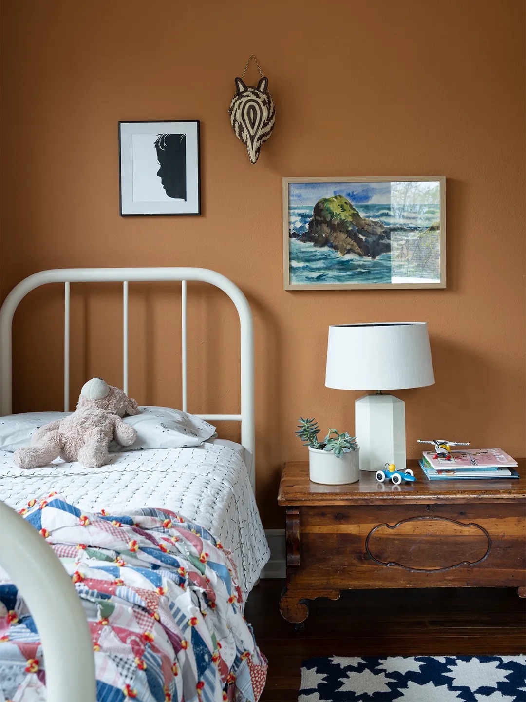 When Hiemstra said brown lends itself to layering, she wasn’t exaggerating. In this Prospect Refuge Studio project, paint, wood, and plush linens result in the hot-chocolate version of a bedroom.